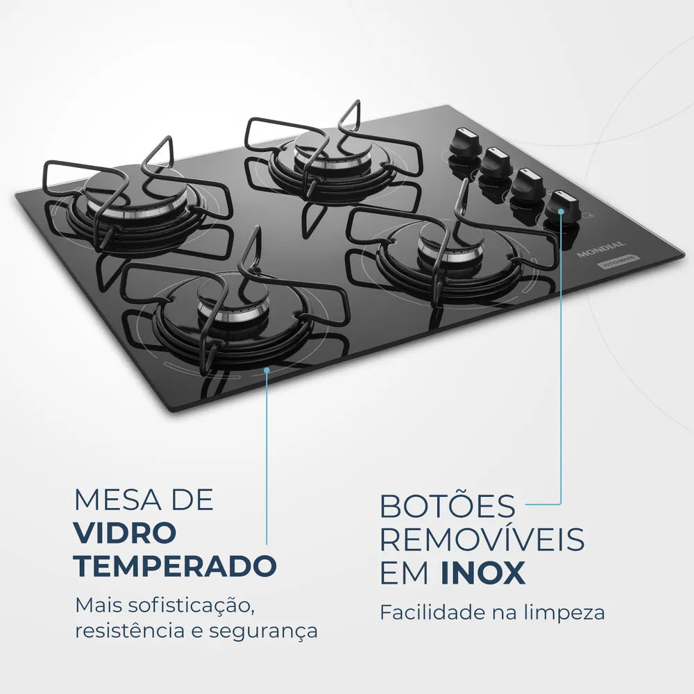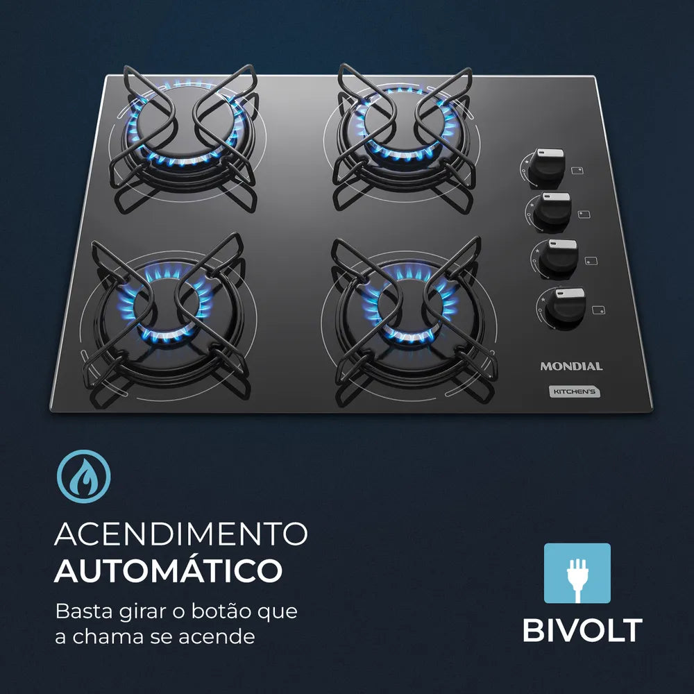 Cooktop a Gás, 4 Bocas, Mondial Bivolt CTG-01
