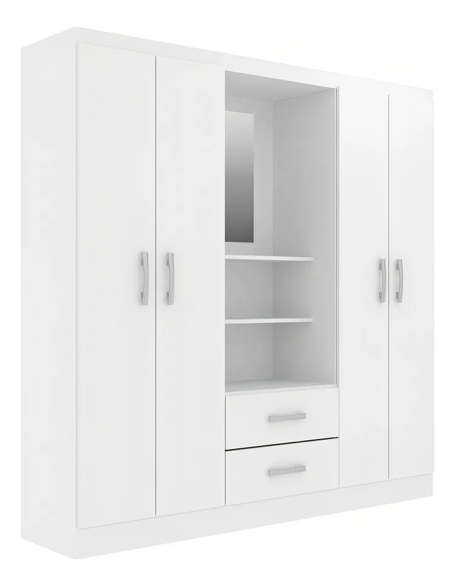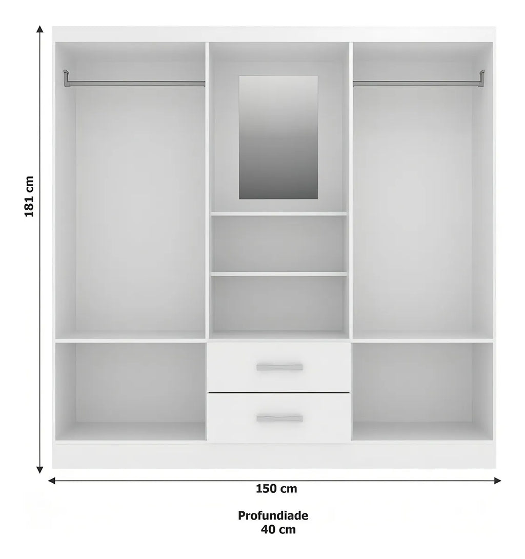 Guarda-roupa Casal Capelinha 4 Portas 2 Gavetas Com Espelho Cor Branco
