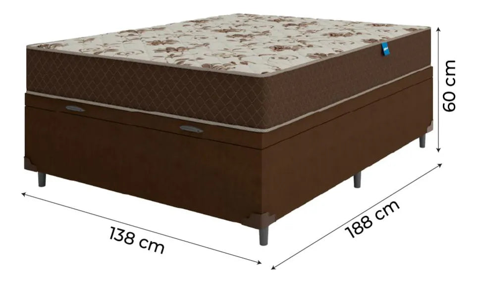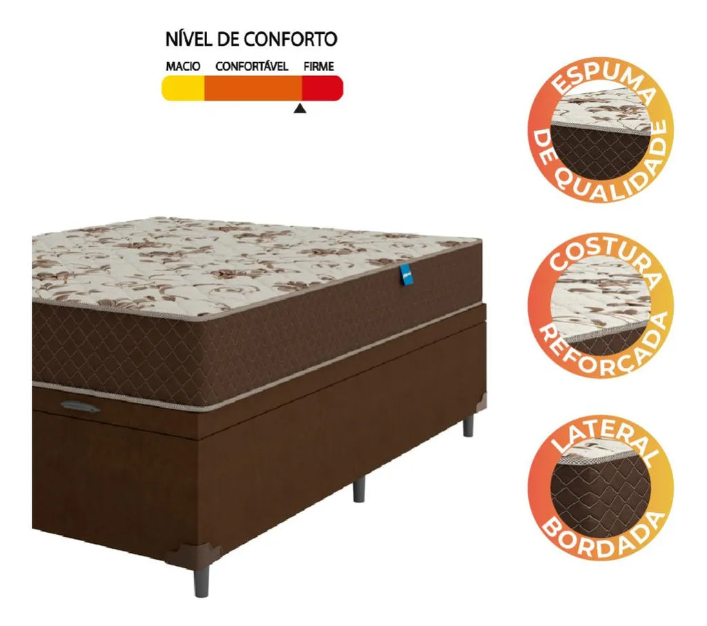 Cama Box Baú Casal Colchão D33 Marquês 138x188x60cm Marrom Marrom