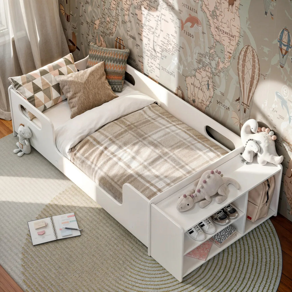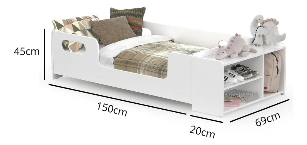 Cama Infantil ACONCHEGO Branca com Nicho e Grades Colchão Incluso Ideal para Transição do Berço Design Seguro Funcional Estrutura Resistente para Quarto Infantil Maxi Do Brasil