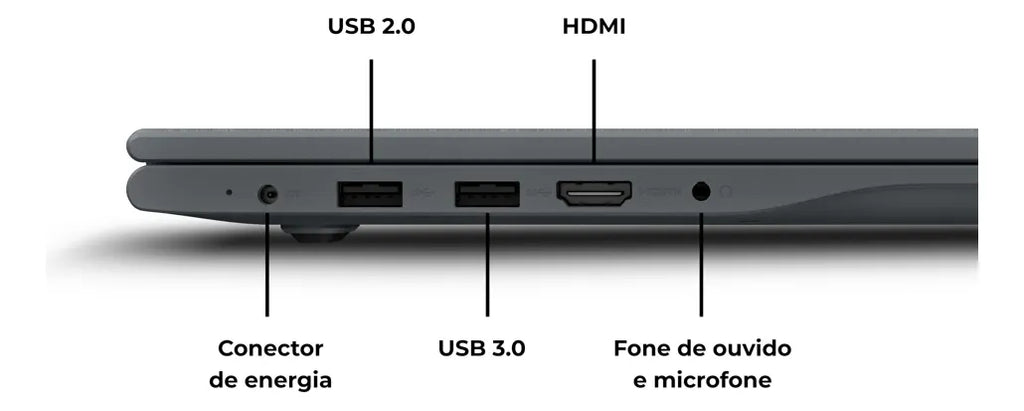 HDMI, USB 2.0, USB 3.0, Conector de alimentação